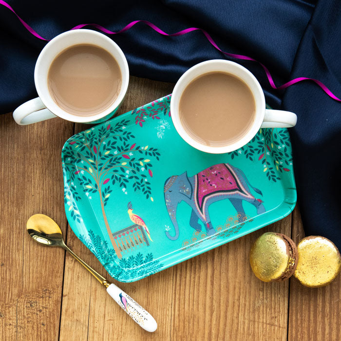 Whether it's a catch up with a friend or a cosy cuppa with your other half, serve up in style with this mug and tray set from Sara Miller London. Featuring beautifully adorned elephants parading through a botanical garden oasis on the melamine tray and porcelain mug pair, this set is as practical as it is eye-catching.