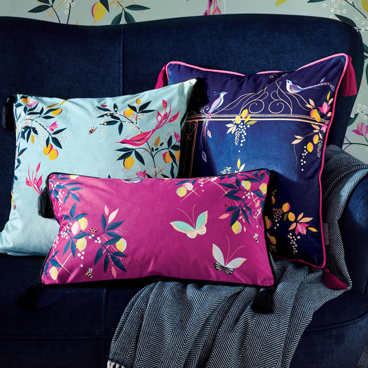Deep Mauve Orchard Butterfly Velvet Cushion