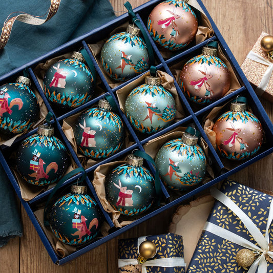 Discover our enchanting Christmas decoration collection, combining playful whimsy with refined elegance. Fillable tin baubles are perfect for personal touches or festive treats. Bring woodland magic to your home with felt hanging animal decorations and charming standing felt figures, exclusively created in collaboration with John Lewis. Add sophistication with glass baubles adorned with gold embellishments, also designed in partnership with John Lewis. Perfect for Christmas trees or festive tablescapes, this collection blends woodland charm with timeless style, offering unique decorations to elevate your holiday décor and create a truly memorable Christmas atmosphere.