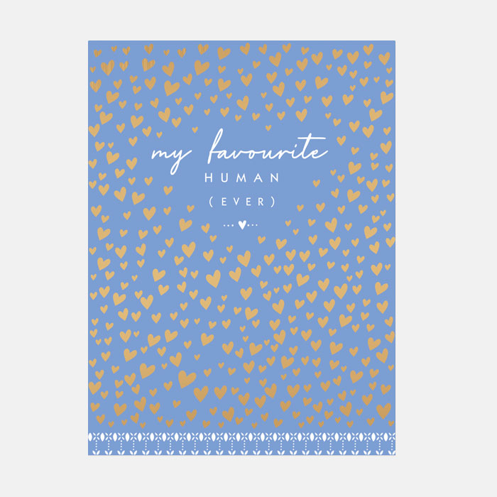 Allez plus loin et exprimez votre adoration avec cette carte « Mon humain préféré de tous les temps » de Sara Miller London. Dotée d'une rafale de cœurs... Read More