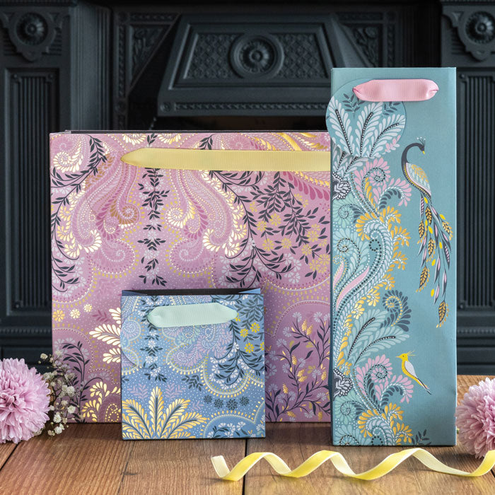The Decorative Filigree Powder Blue Small Bag by Sara Miller London adds an elegant finishing touch to any gift. Ideal for jewellery boxes, gift cards, or other cherished keepsakes, this beautifully crafted bag showcases a delicate filigree design of leafy patterns and scrolling ferns set against a soft powder-blue backdrop. Made from premium linen-textured paper and finished with gold detailing, each bag includes a coordinating gift tag and ribbon handle. Sold as a set of four, they’re perfect to keep on hand for last-minute surprises or for presenting thoughtful group gifts, such as bridesmaid tokens.