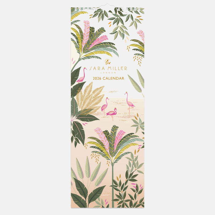 Plan your year at a glance with this elegant 2026 slim wall calendar. Featuring a light cream and pink background adorned with a delicate botanical jungle print, it brings style and calm to any space. Each month is clearly laid out with writing space for notes, reminders, and important dates. Slim and lightweight, it fits perfectly in kitchens, home offices, or workspaces. A practical yet beautiful way to stay organized in 2026, this botanical calendar complements your matching diary set.