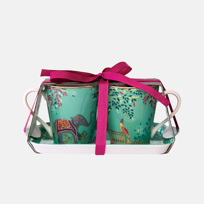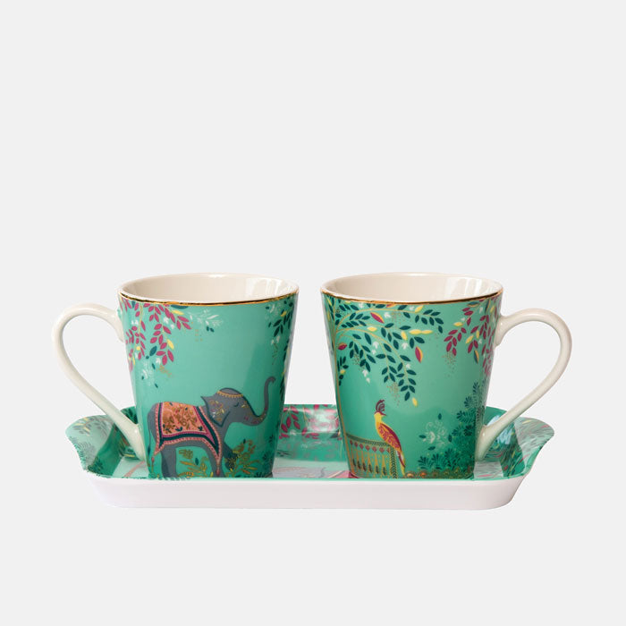Whether it's a catch up with a friend or a cosy cuppa with your other half, serve up in style with this mug and tray set from Sara Miller London. Featuring beautifully adorned elephants parading through a botanical garden oasis on the melamine tray and porcelain mug pair, this set is as practical as it is eye-catching.